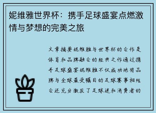 《理想世界杯甜蜜之夜:激情赛场与浪漫时刻的完美邂逅》探讨了世界杯赛事如何不仅仅是体育竞技的舞台,更是充满情感波动与浪漫元素的独特夜晚。在这个全球瞩目的体育盛事中,激情与浪漫之间的界限变得模糊,观众的心与赛场上的每一刻都紧密相连。本文从四个方面对世界杯带来的“甜蜜之夜”进行了深度剖析:激情的赛场、浪漫的社交时刻、赛事背后的情感联结、以及世界杯对爱情文化的深远影响。每个方面不仅通过现象进行探讨,还结合...